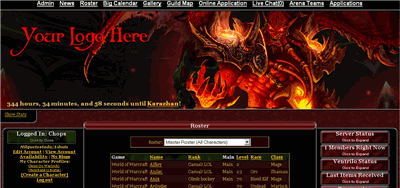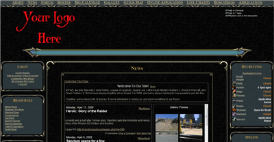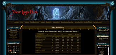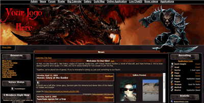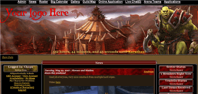 Modelled after WorldOfWarcaft.com site. A common theme for WoW guilds.