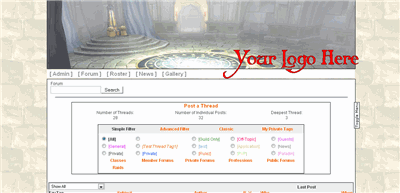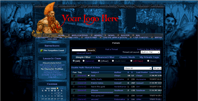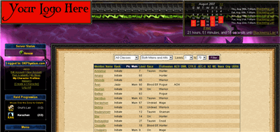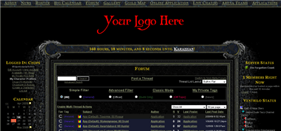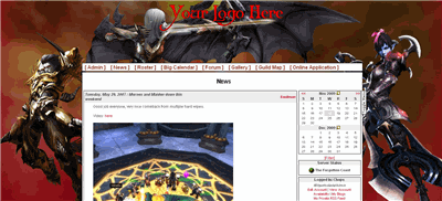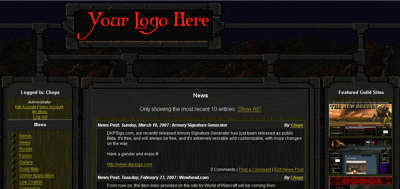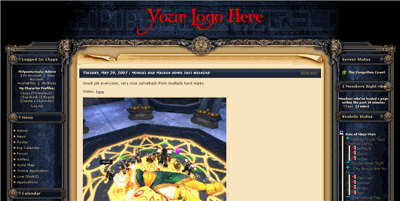 Based on a template created by Brandon Rinker for the now-defunct guild "Renewal." This is another that looks best with a transparent background logo. and copyright 2007 by Brandon Rinker.