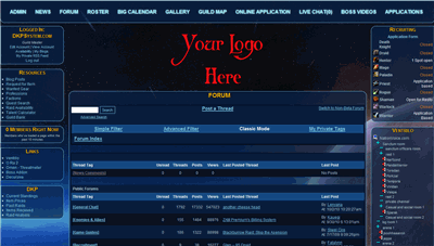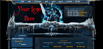 A theme for the Wrath of the Lich King WoW expansion, however, this can easily be tweaked to be non-WoW specific. Recommended Logo Dimensions: 300x200. Written by Jan Bosman for DKPSystem.com.