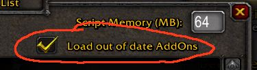 Click that button and you'll see a list of all the installed addons. Near the top is a checkbox labeled "Enable Outdated Mods" as follows