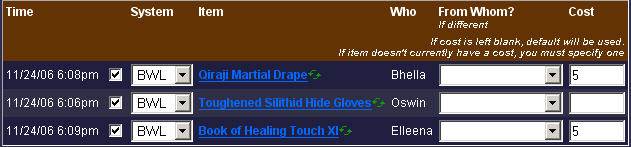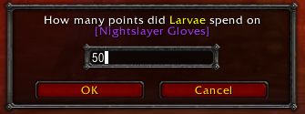 Enter in the points spent, and it'll automatically deduct those points from that character for the in-game DKP standings, and also record that information for uploading at the end of the night.