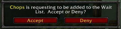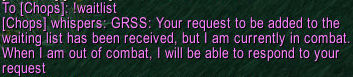 Users can also request to be added to the waiting list automatically by sending a properly formatted tell of the format: !waitlist