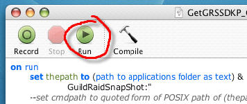 For MacOSX users, we have a GetGRSSDKP_OSX Applescript file. Doubleclicking that icon in your GuildRaidSnapShot folder will open up the Applescript window. Click "Run" and the download process will begin.