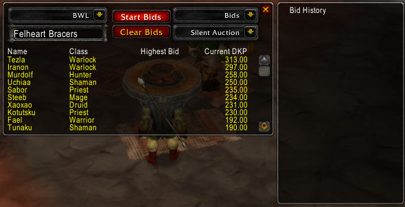 - Open Auction: Some guilds prefer completely open Bidding. In this case, bids are submitted in the normal fashion (ie !bid 123), and then the high bid AND high bidder are relayed to the raid.