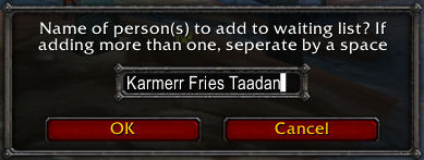 Enter the names of the members you'd like to add to the Waiting List, separating each name by space: