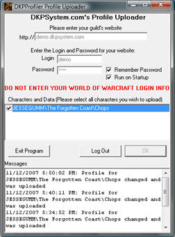 After logging in, the program will automatically minimize to the "System Tray" like this: . You can click the icon to re-open the DKPProfilerUploader window.