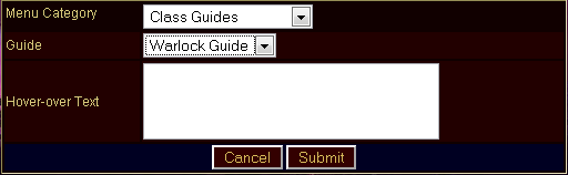 From the drop down box, choose "Warlock Guide" and the form will transform like so: