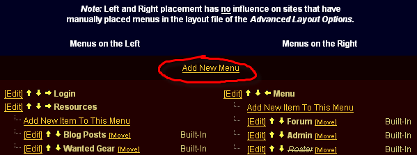 On this page, our entire menu is detailed. If it doesn't already exist, we want to create a "Class Guides" Menu Category, so lets click "Add New Menu" at the top
