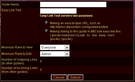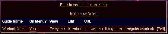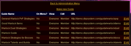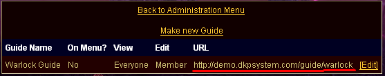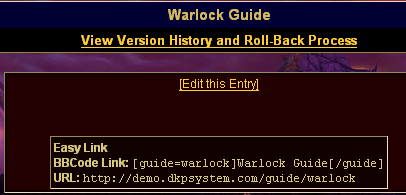 To see the utility of the easy link text, consider how much easier it is to remember and link a guide like this: http://mysite.dkpsystem.com/guide/warlock , than it is to link something like http://mysite.dkpsystem.com/guide.php?id=56